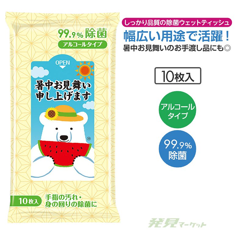 暑中お見舞い申しあげます(しろくま) 99.9%除菌ウェットティッシュ
