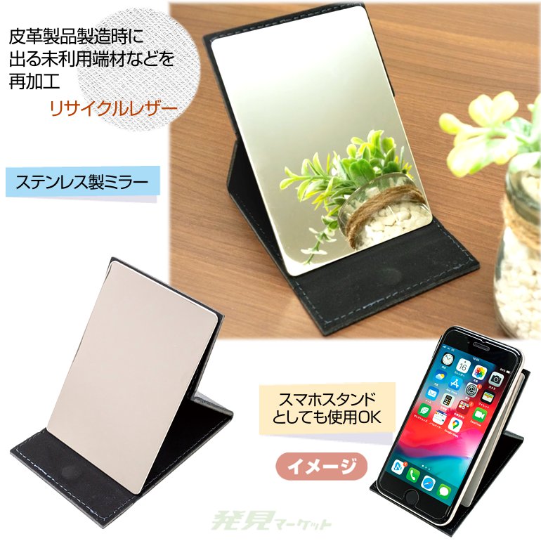 PREMO リサイクルレザー ミラー&モバイルスタンド