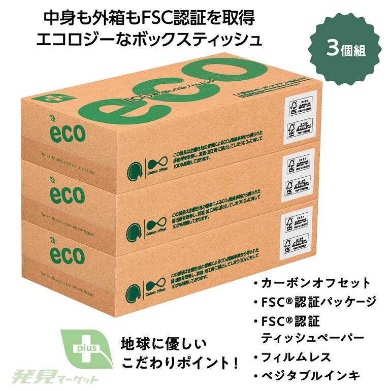 プラスエコBOXティッシュ100W3個組