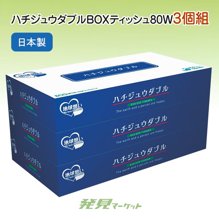 ハチジュウダブルBOXティッシュ80W3個組
