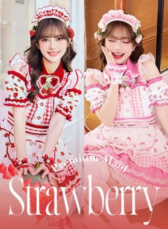 【予約】ストロベリーミルクギンガムメイド《オリジナルコスプレ8点セット》【Malymoon/マリームーン】【CS25212】