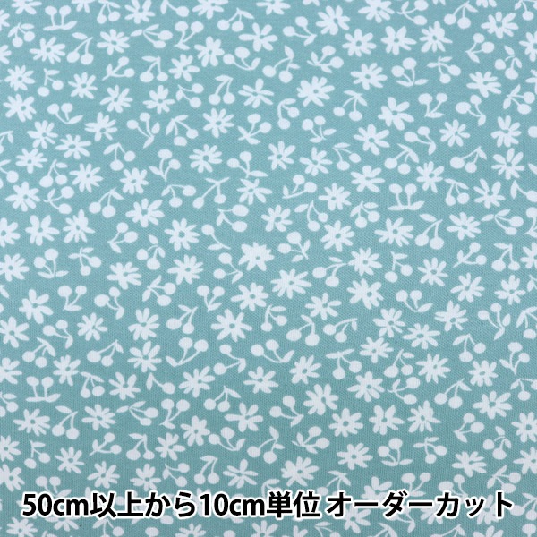 【数量5から】 生地 『40スムースプリント チェリー柄 水色 YZ-7910-1B』