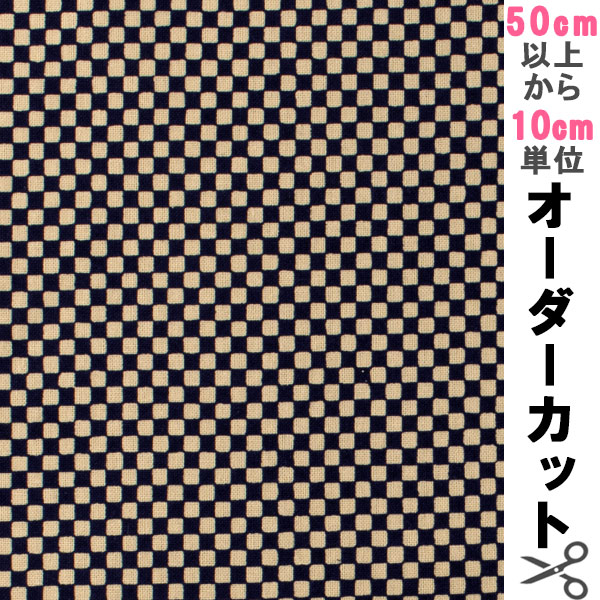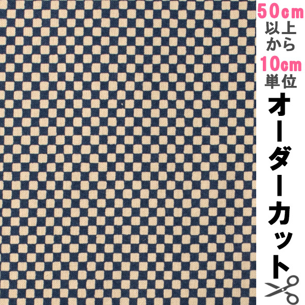 【数量5から】 生地 『生地市松柄 和調シーチングプリント 紺色 88222-4-4』