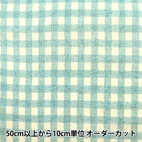 【数量5から】 生地 『Wガーゼ プリント チェック アクアグリーン 9600-3B』