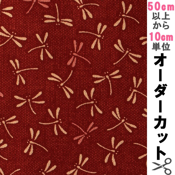 【数量5から】 生地 『生地とんぼ柄 和調シーチングプリント 赤色 88222-7-4』