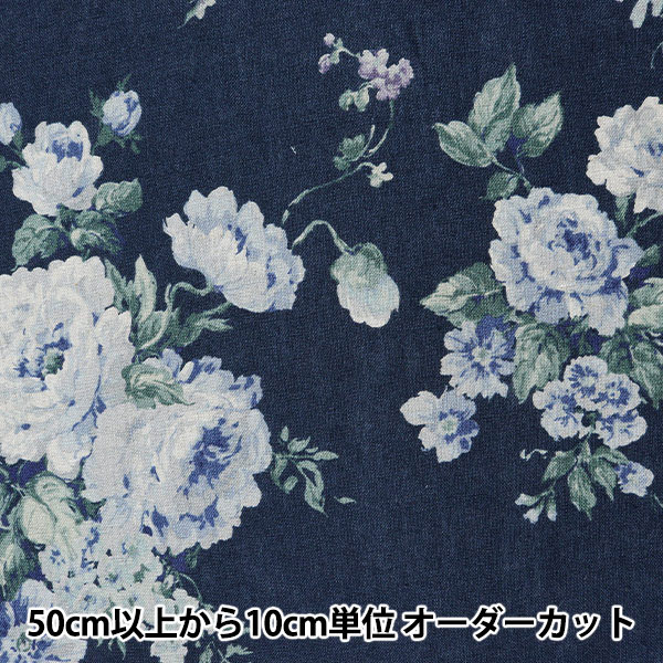 【数量5から】 生地 『麻100% プリント花柄 449841-D』 YUWA 有輪商店