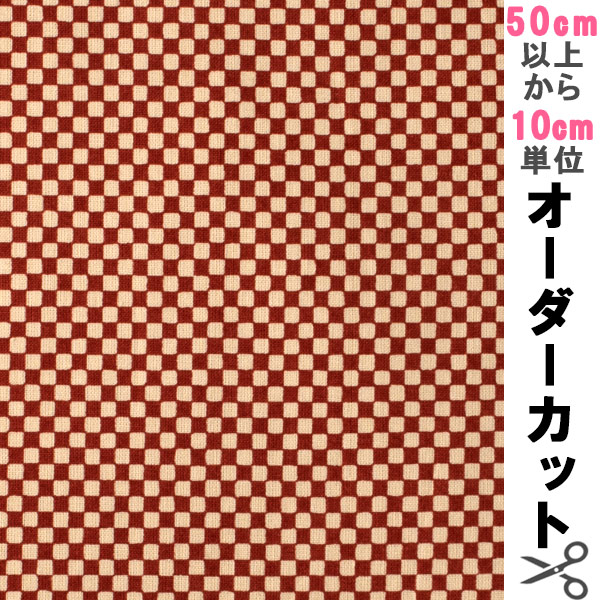 【数量5から】 生地 『生地市松柄 和調シーチングプリント 赤色 88222-4-2』