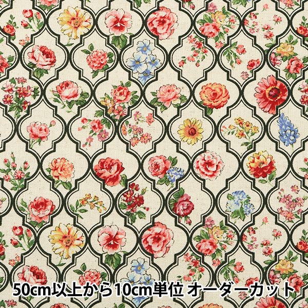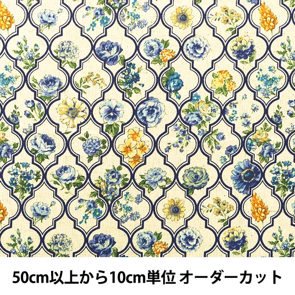 【数量5から】 生地 『綿麻キャンバス モロッカンon花柄 YUZ-752-2』 YUWA 有輪商店【ユザワヤ限定商品】