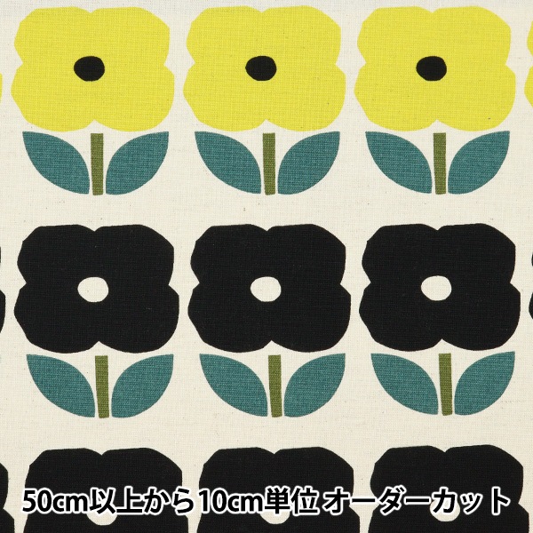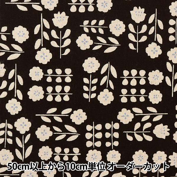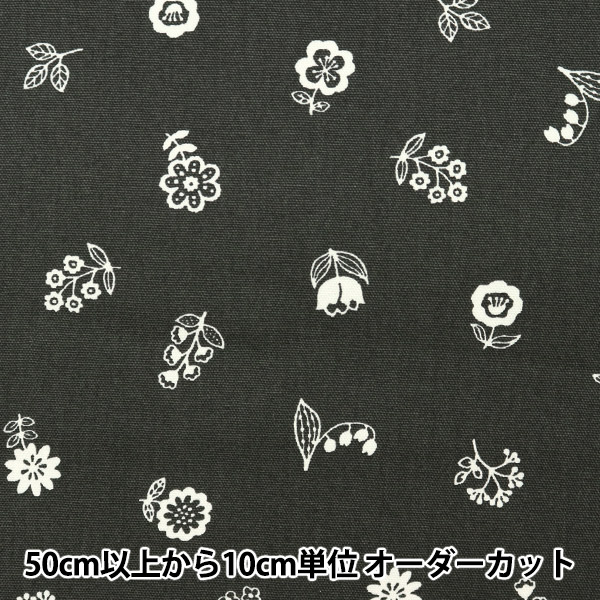 【数量5から】 生地 『う早この布 綿麻キャンバス ファンシー花柄 クロ UP5792-B』 COTTON KOBAYASHI コ...