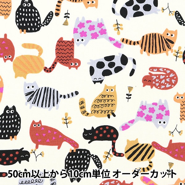 【数量5から】 生地 『オックス FUWARI ネコ柄 オフホワイト 9900-6A』