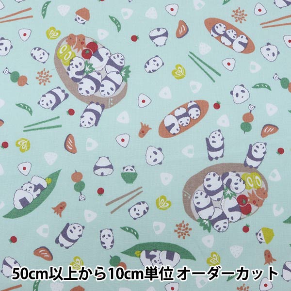 【数量5から】 生地 『抗菌防臭加工 シーチング おべんとパンダ ライトミント SHUPANLU-D』
