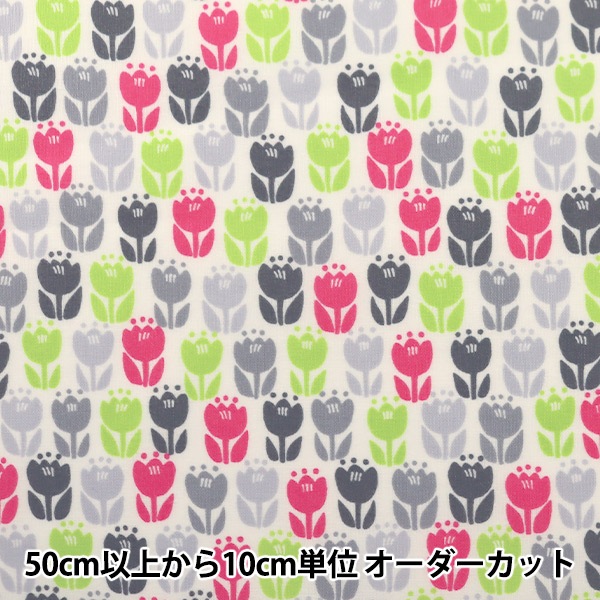 【現品限り】 【数量5から】 生地 『シーチング FANTASTIC WORLD チューリップ グレー LGA-41000-3D』...