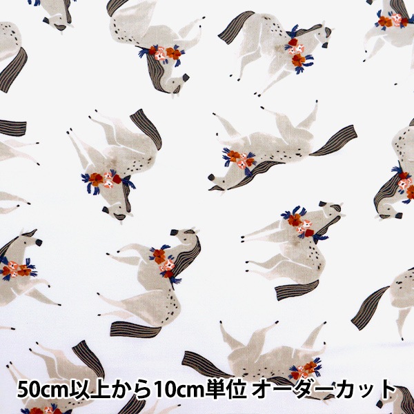 【数量5から】 生地 『インクジェットプリント ポニー SRR1695-WHITE』 USAコットン