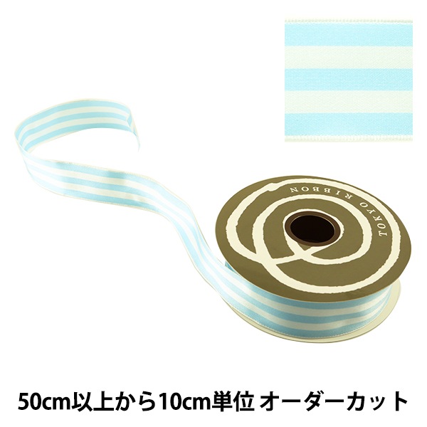 【数量5から】 リボン 『S.U.シュガーストライプ ワイヤー入り 30mm幅 3番色 サックス』 TOKYO RIBBON 東京...