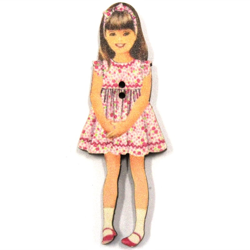 フランス製 木製ボタン 2つ穴 (はにかむ女の子) アトリエ・ボヌール・ドゥ・ジュール