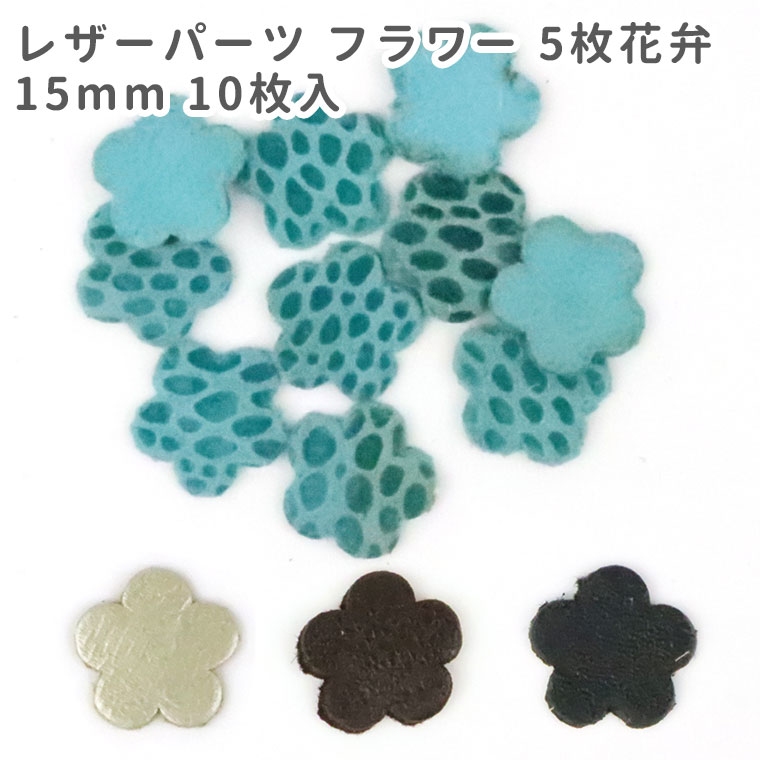 10枚入 15mm レザーパーツ フラワー 5枚花弁 / レザーチャーム 革タグ 革 クラフト ハンドメイド 手作り ピアス アク...