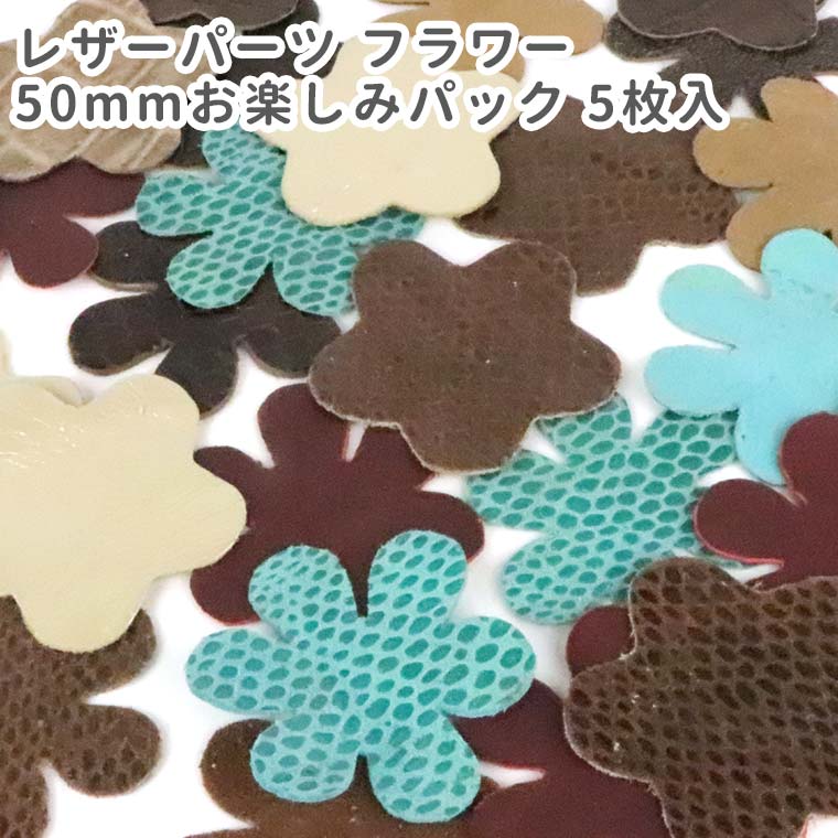 5枚入 50mm レザーパーツ フラワー お楽しみパック / レザーチャーム 革タグ 革 クラフト ハンドメイド 手作り ピアス ...