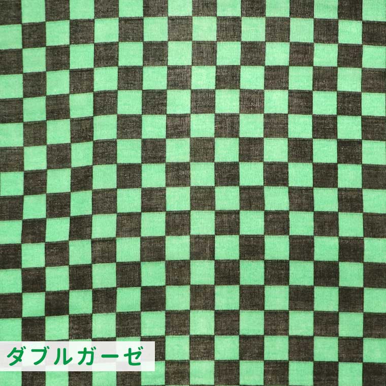 ダブルガーゼ 市松模様 模様サイズS 16mm 黒×緑 幅110cm 長さ10cm / 布 綿100% 黒 くろ 緑 みどり 市松...