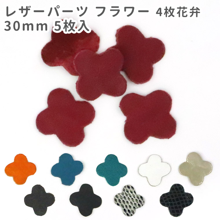 5枚入 30mm レザーパーツ フラワー 4枚花弁 / レザーチャーム 革タグ 革 クラフト ハンドメイド 手作り ピアス アクセ...