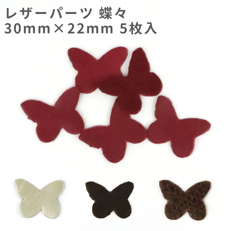 5枚入 30mm×22mm レザーパーツ 蝶々 / レザーチャーム 革タグ 革 クラフト バタフライ ハンドメイド 手作り ピアス...