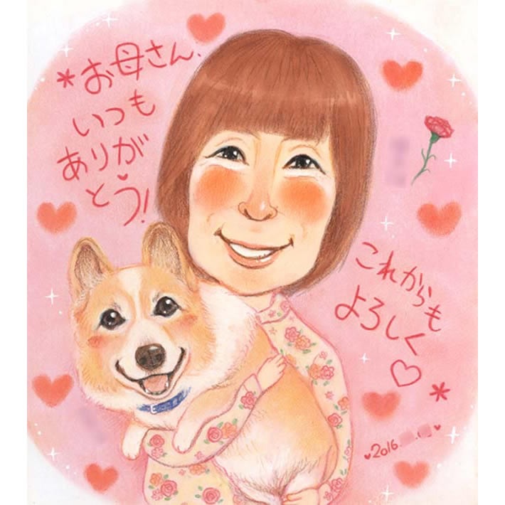 ペットと一緒に おかあさんありがとうの気持ちを込めて 母の日、マザーズデー、誕生日、敬老の日などに母の日の贈り物 似顔絵で記念に残...
