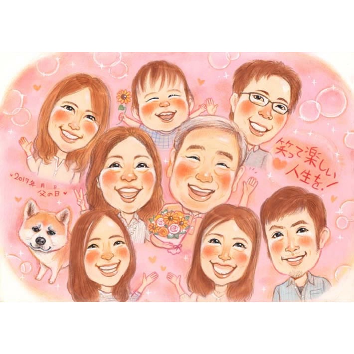 家族の似顔絵 大人数 ペットも一緒 両親 父 母 祖父 祖母 お祝い プレゼント 記念 名入れ 名前入れ プチギフト 一期 似顔絵...