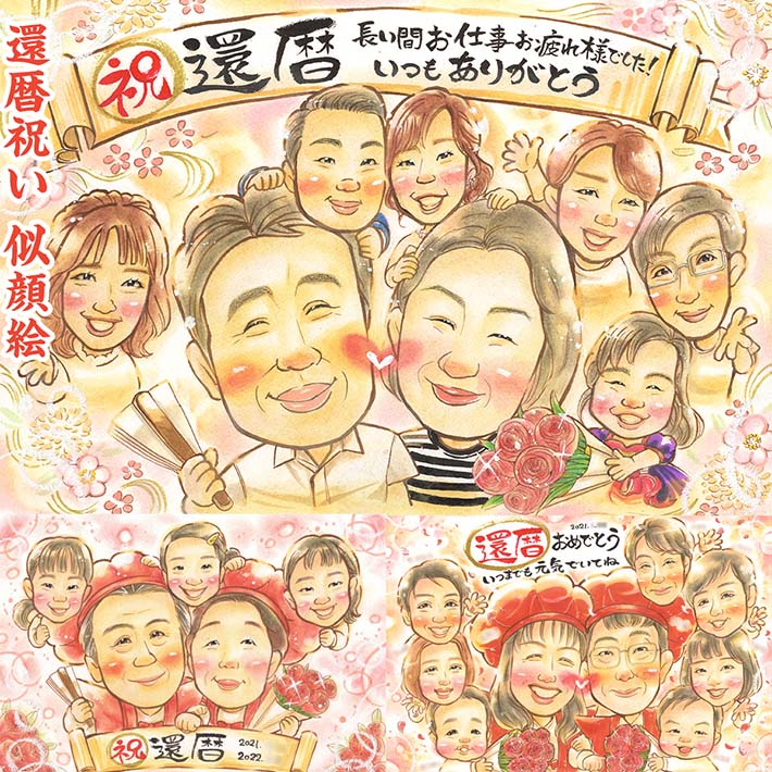 還暦祝いの喜びを似顔絵に!心からのプレゼントを贈ろう 引退 結婚祝い 米寿 出産 父の日 敬老の日 卒業 受章 長寿 内祝い 送別...