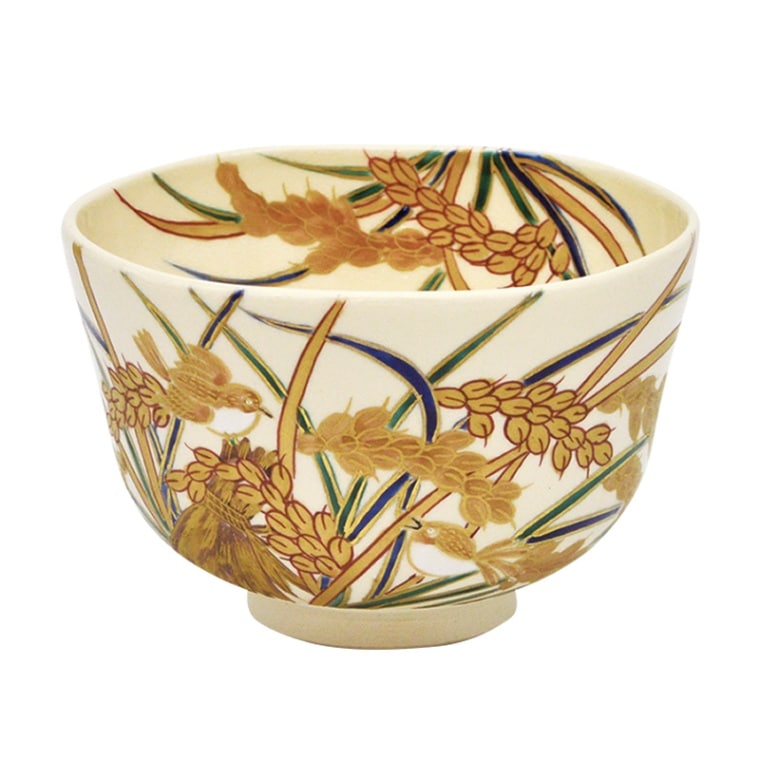 茶碗 仁清 稲穂に雀 加藤如水作