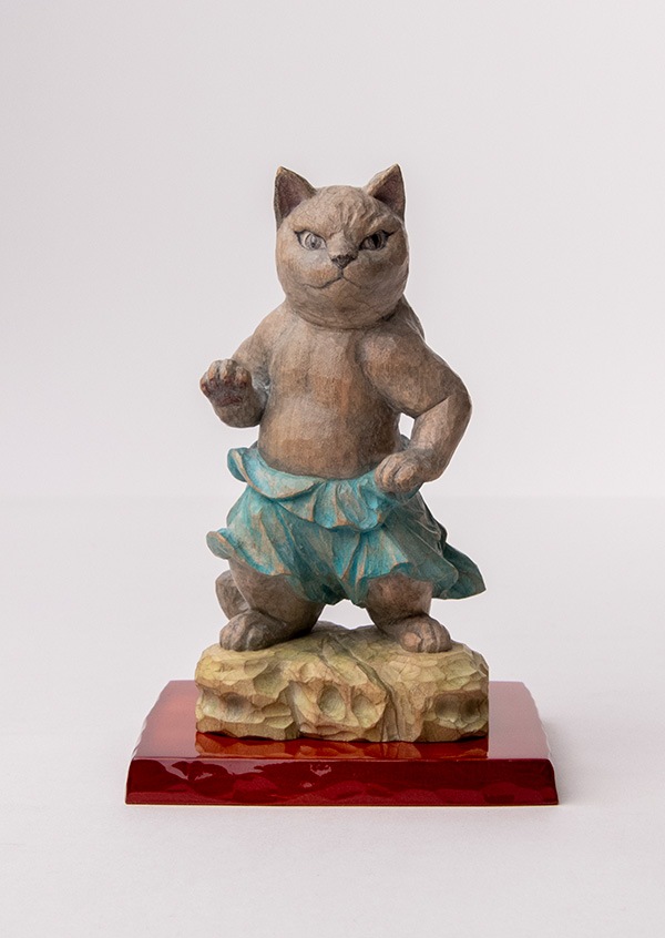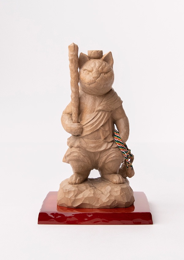木彫りの立薬師猫 袈裟を着た猫仏さま