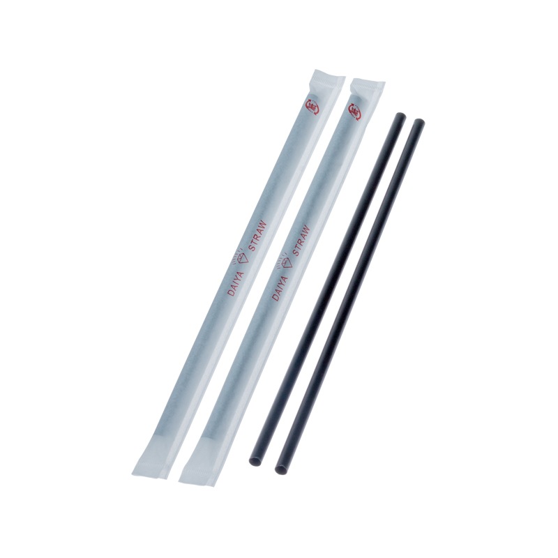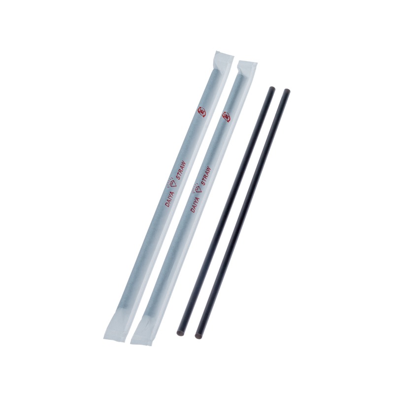 バイオマスストローアイスコーヒー用4.5㎜×18㎝ストレート 黒 紙包装[入数:10,000]