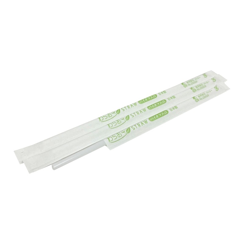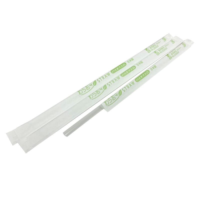バイオマスストローアイスコーヒー用4.5㎜×18㎝ストレート クリア 紙包装[入数:10,000]