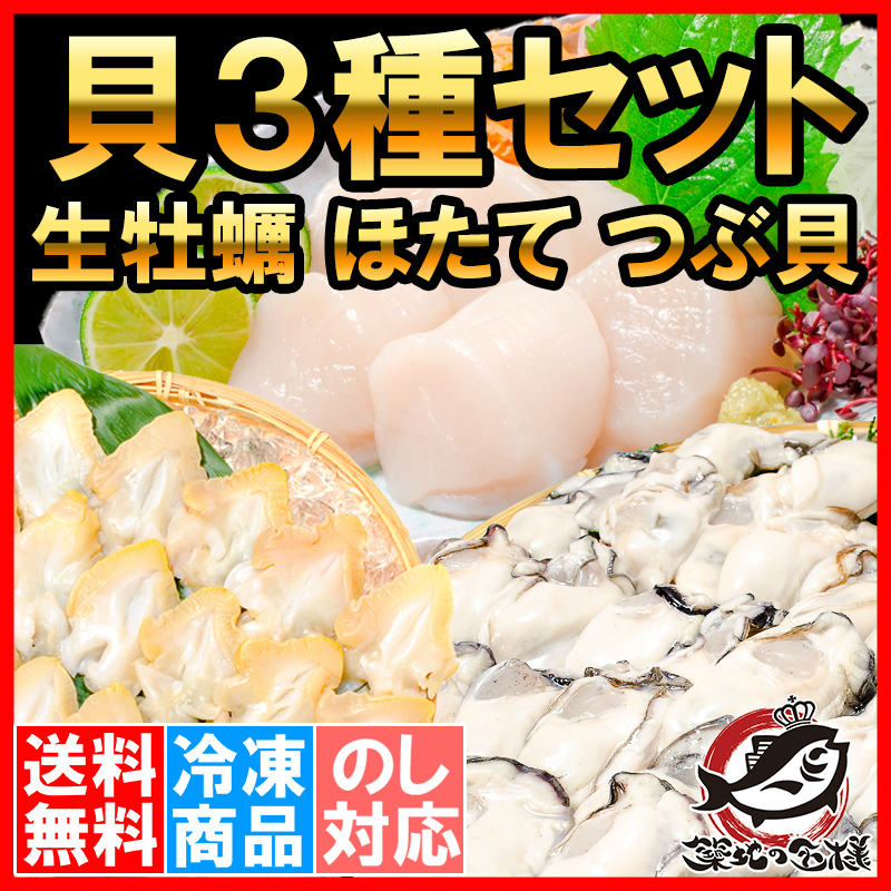 送料無料 貝3種セット 生牡蠣 1kg ホタテ 1kg つぶ貝開き 500g お刺身用 生食用 むき身 かき カキ 牡蛎 牡蠣 ほ...