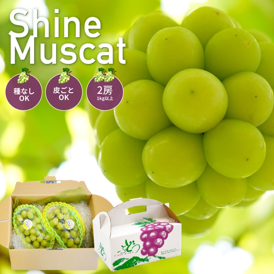 2025年 ご予約受付中 シャインマスカット 1kg以上 (約500g×2房入)【送料無料】※一部地域を除く種なし・皮ごと食べれる...