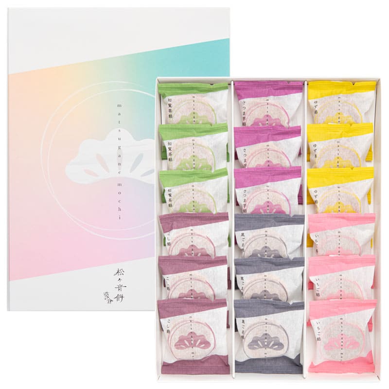 【eギフト】松ヶ音餅〈季節限定:ゆず餡・知覧茶餡・さつま芋餡〉(6種類18個入) 草加葵