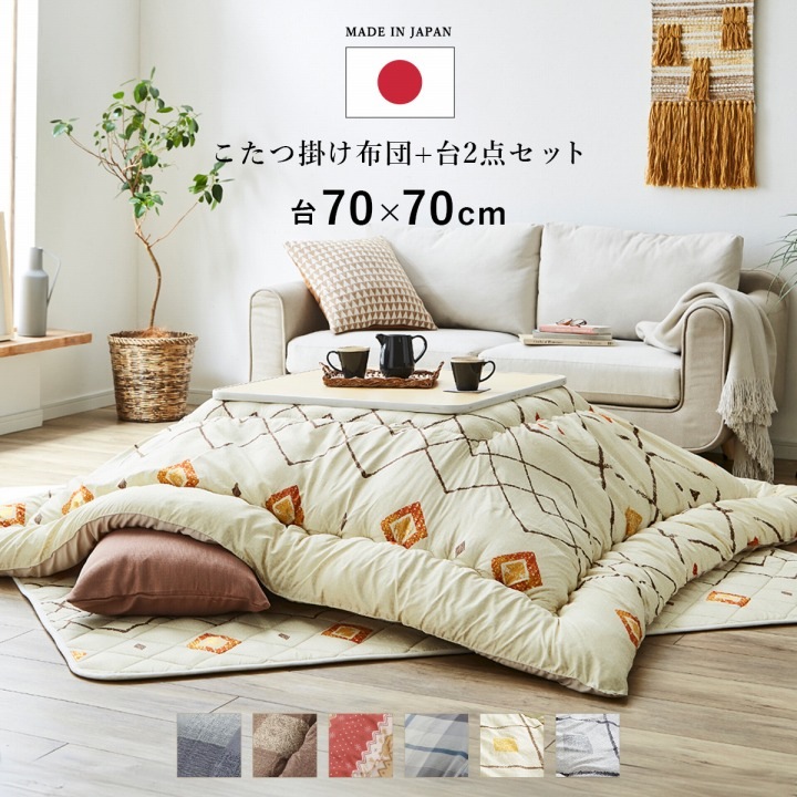 こたつ 選べる日本製こたつ布団 2点セット(こたつ台 こたつ布団) 正方形 こたつテーブル 70×70㎝