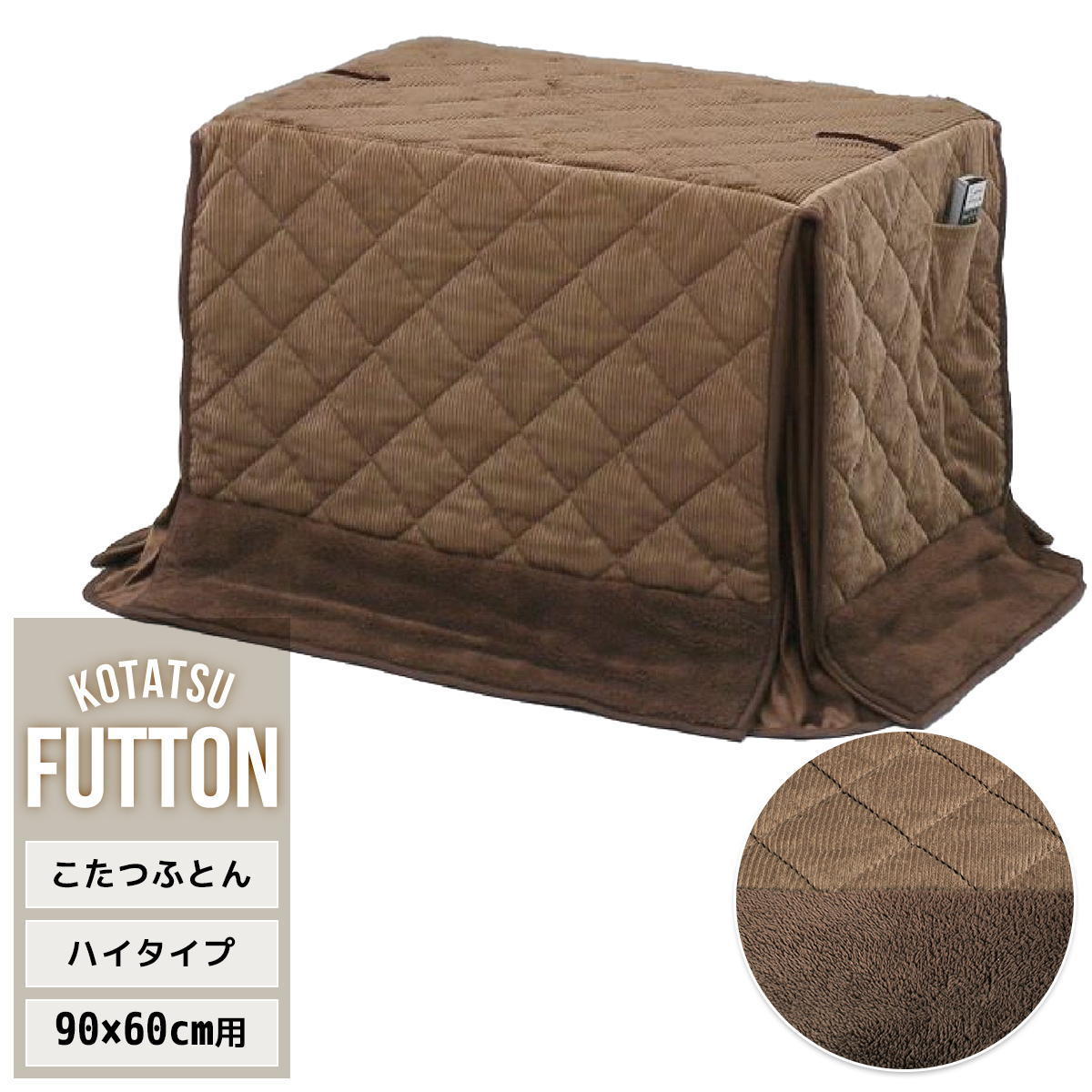 ハイコタツ掛布団 (90cm×60cm用) コーデュロイブラウン UKKN0162 コタツ ハイタイプコタツ用ふとん 角型 アル...