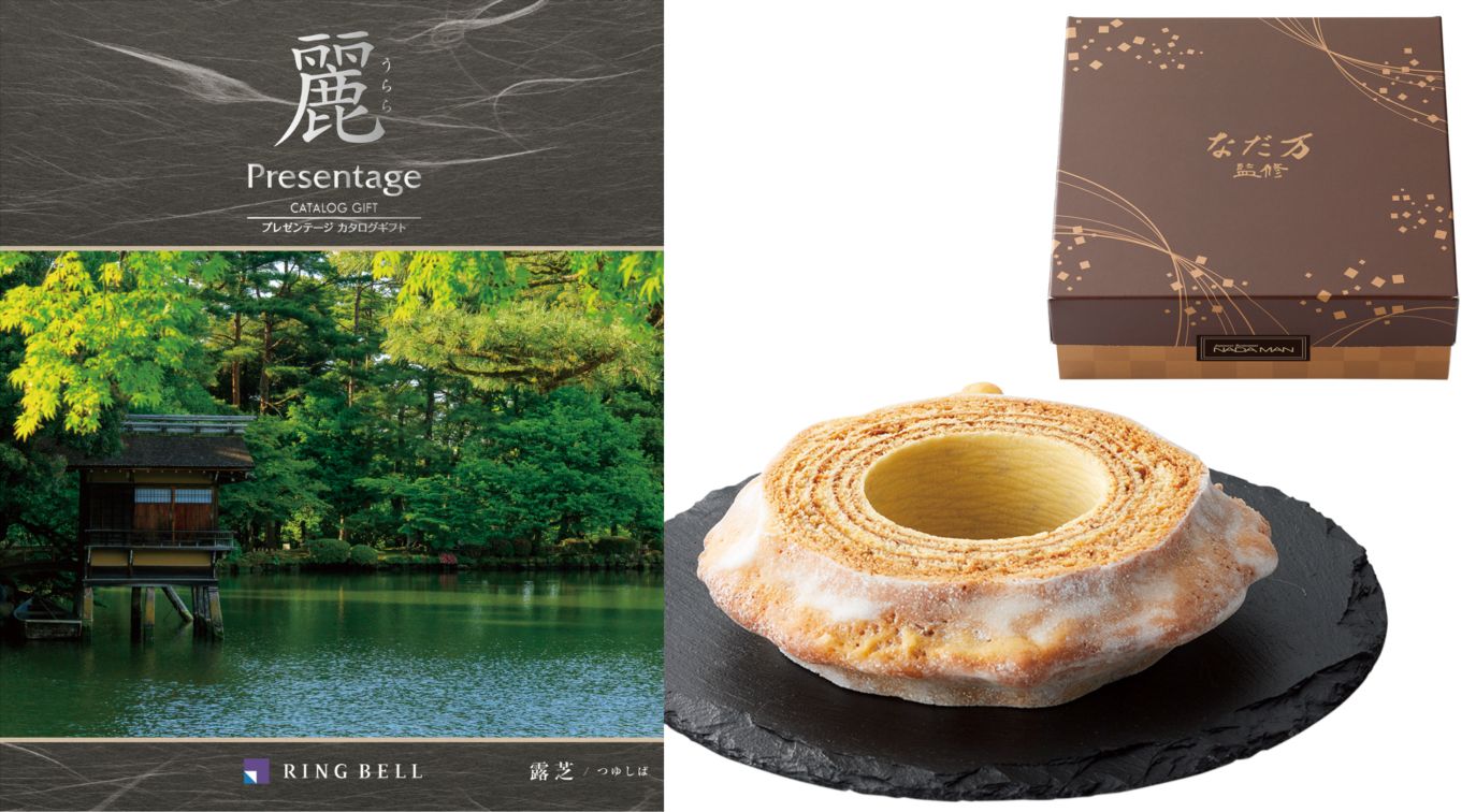 【お香典返し専用の和菓子(和三盆バウムクーヘン)セット】麗(うらら)カタログギフト 露芝(つゆしば) +なだ万監修 至福の絆 和三...