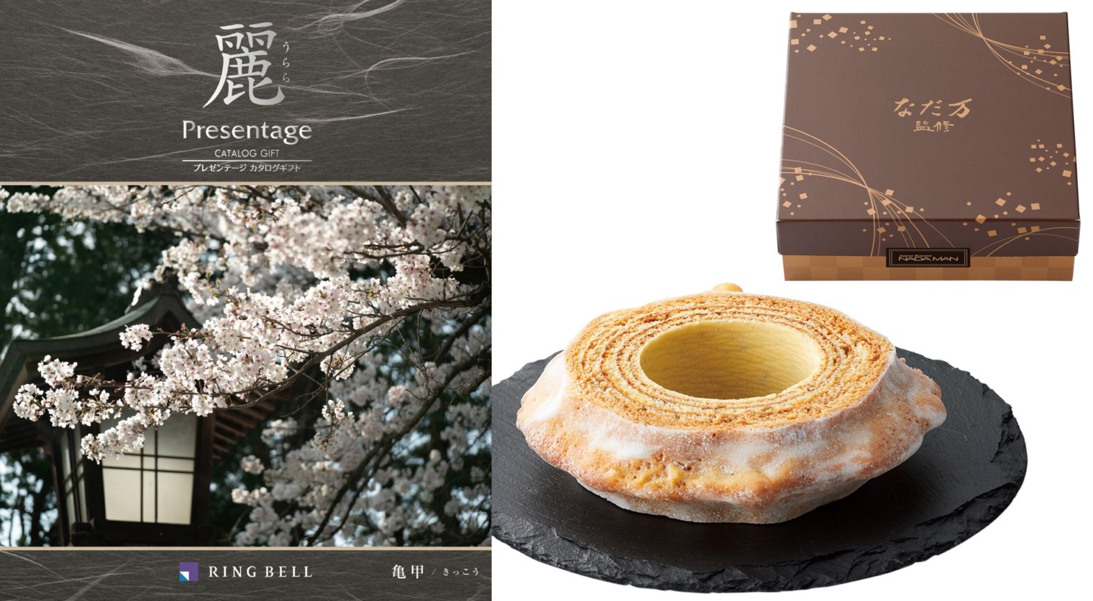 【お香典返し専用の和菓子(和三盆バウムクーヘン)セット】麗(うらら)カタログギフト 亀甲(きつこう)+なだ万監修 至福の絆 和三盆...