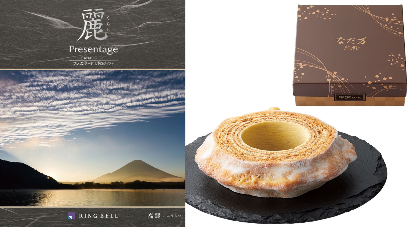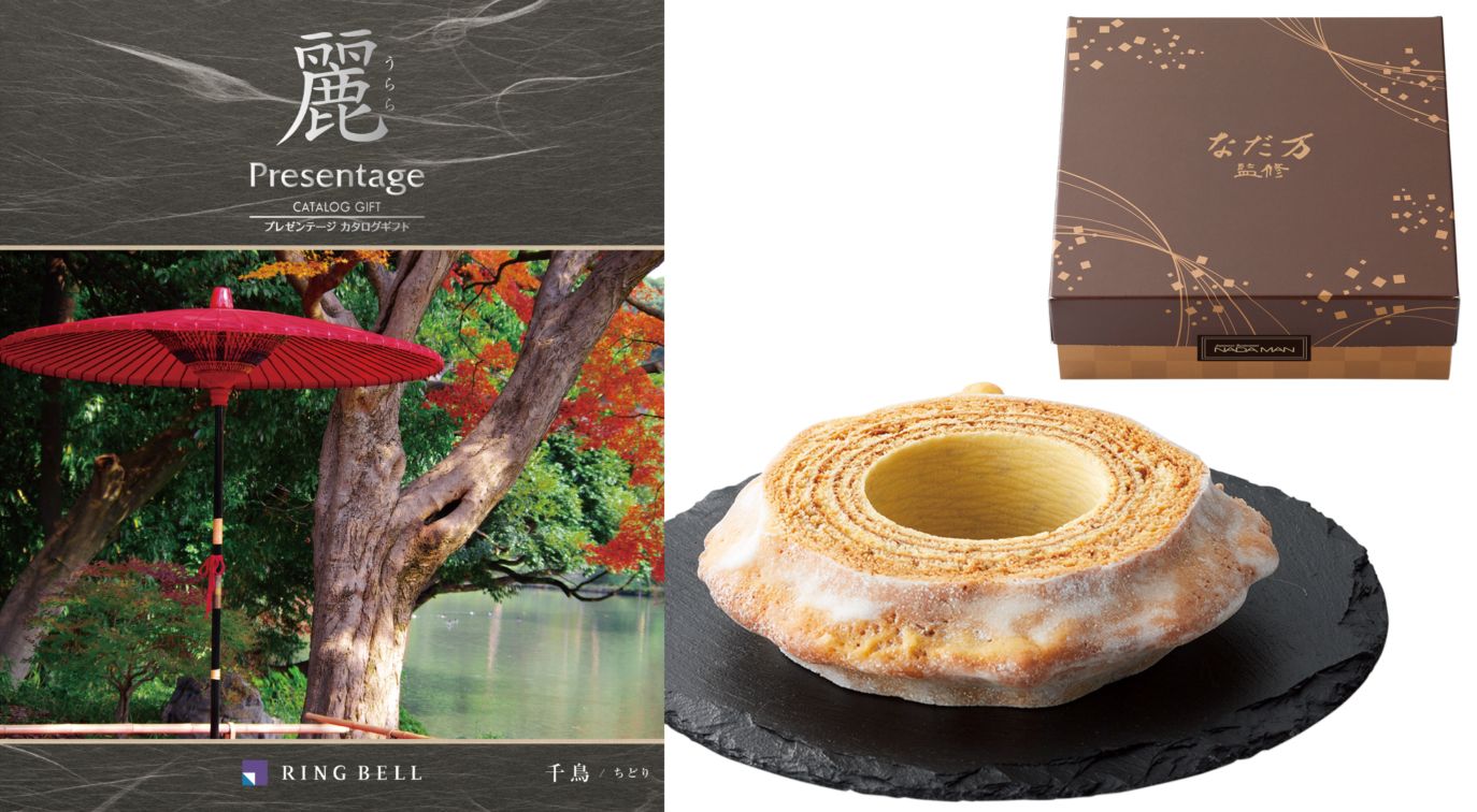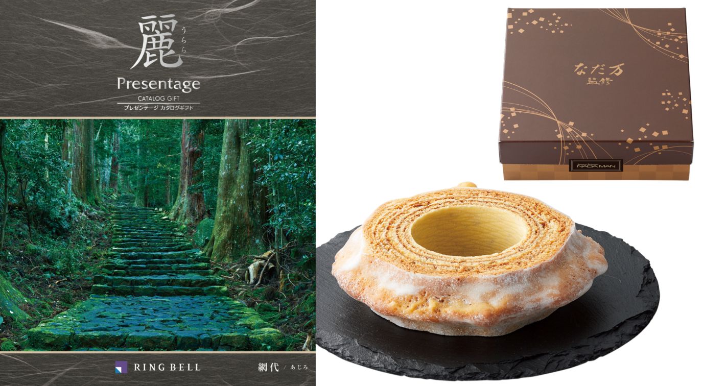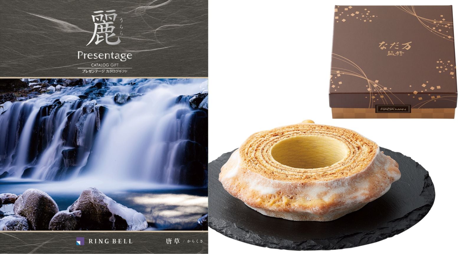 【お香典返し専用の和菓子(和三盆バウムクーヘン)セット】麗(うらら)カタログギフト 高麗(こうらい)+なだ万監修 至福の絆 和三...