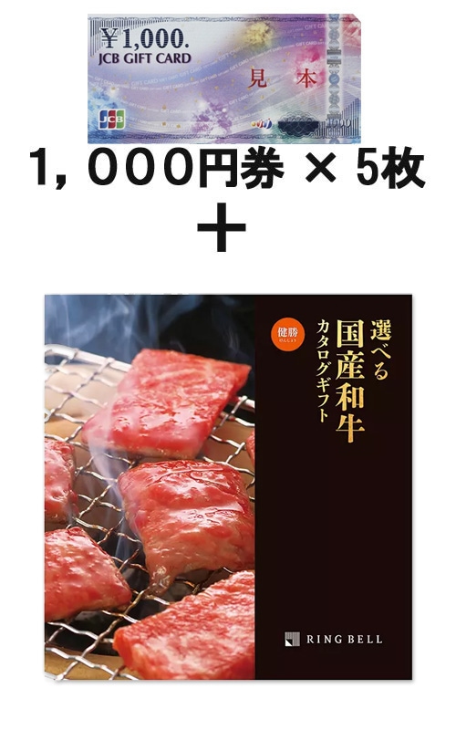 JCBギフトカード5枚 &選べる国産和牛カタログギフト 健勝(けんしょう)