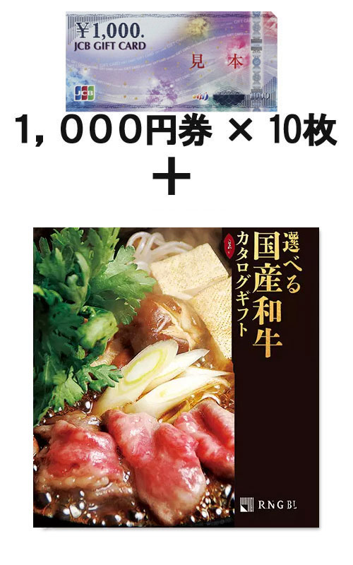 JCBギフトカード10枚 &選べる国産和牛カタログギフト 溌剌(はつらつ)