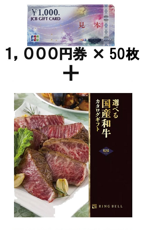 JCBギフトカード50枚 &選べる国産和牛カタログギフト 福禄(ふくろく)