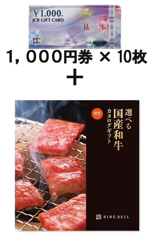 JCBギフトカード10枚 &選べる国産和牛カタログギフト 健勝(けんしょう)