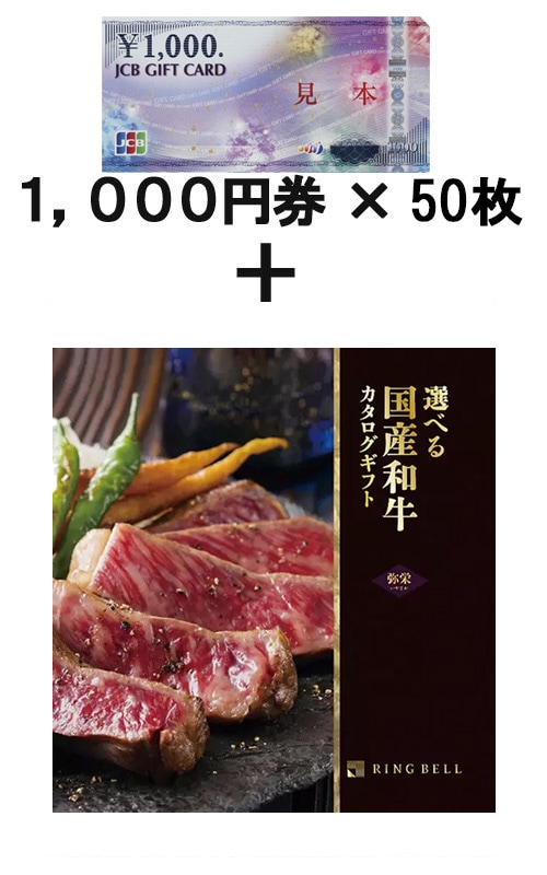 JCBギフトカード50枚 &選べる国産和牛カタログギフト 弥栄(いやさか)