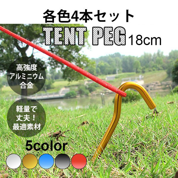 【セール】即納 安い ペグ 高強度 アルミニウム合金 18cm 4本セット テントペグ ピンペグ フック型 テント タープ 設営 ...