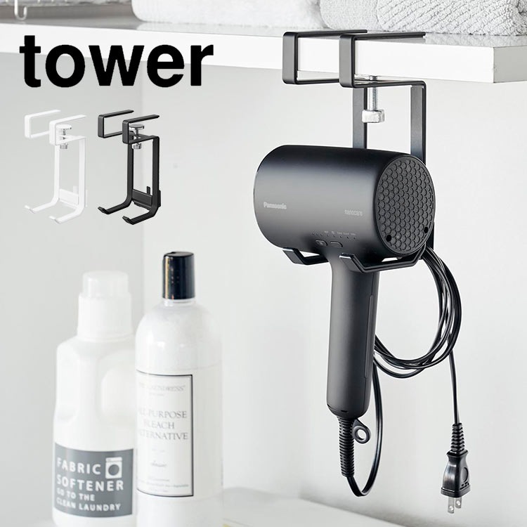 [ 棚下ドライヤーホルダー タワー ]山崎実業 tower ドライヤーホルダー ドライヤー 収納 サニタリー ドライヤー入れ フッ...