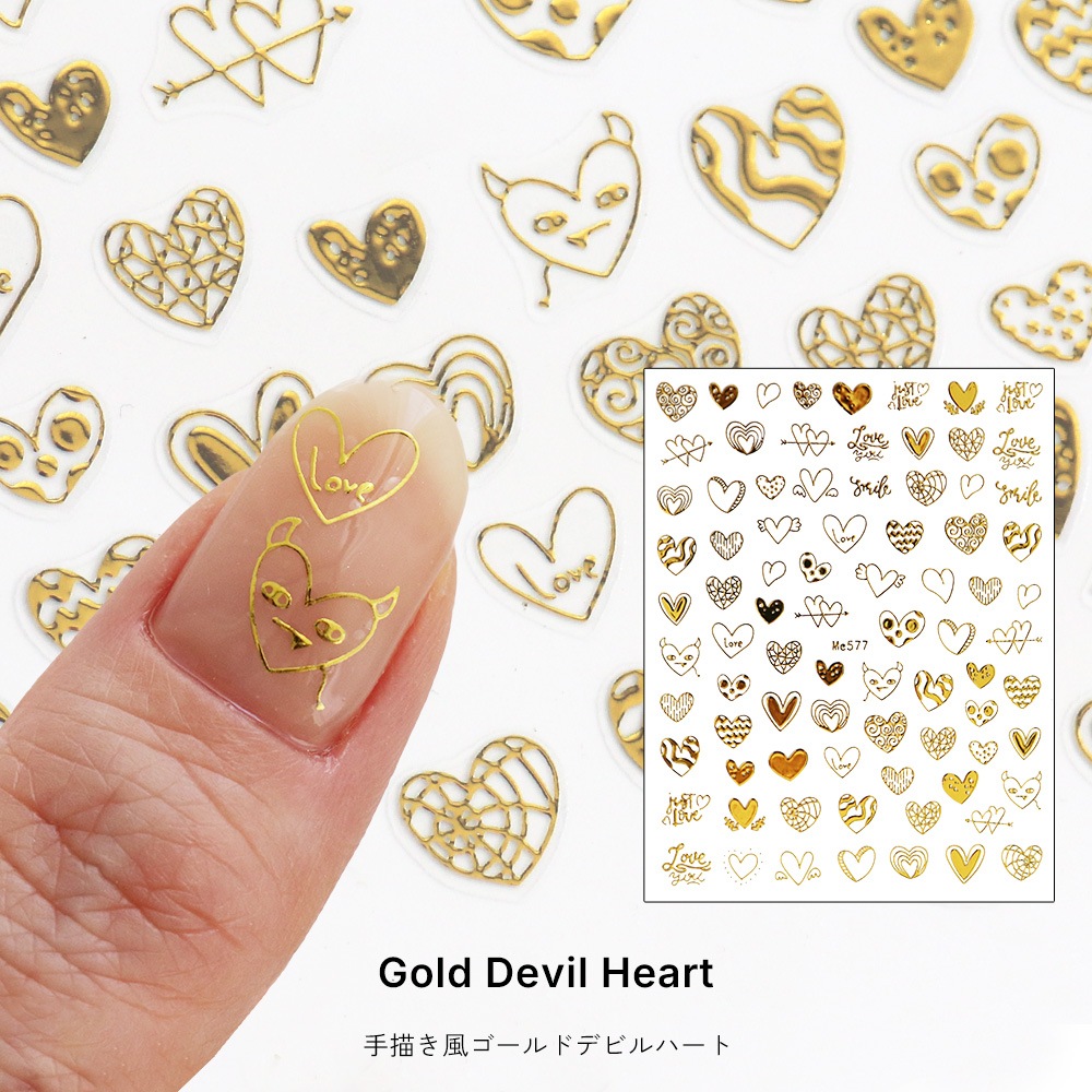 【ネコポス送料無料】ネイルシール 手描き風ゴールドデビルハートシール