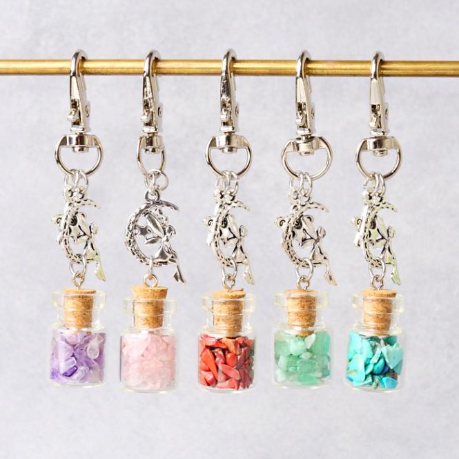 さざれ 小瓶 キーホルダー 天然石 パワーストーン さざれ石 砕石 バックチャーム ガラス瓶 コルク栓 ミニボトル フェアリー 妖...