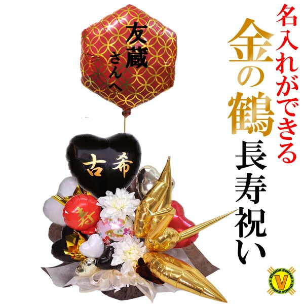 送料無料オリジナルバルーンアレンジメント長寿祝い 金の鶴
