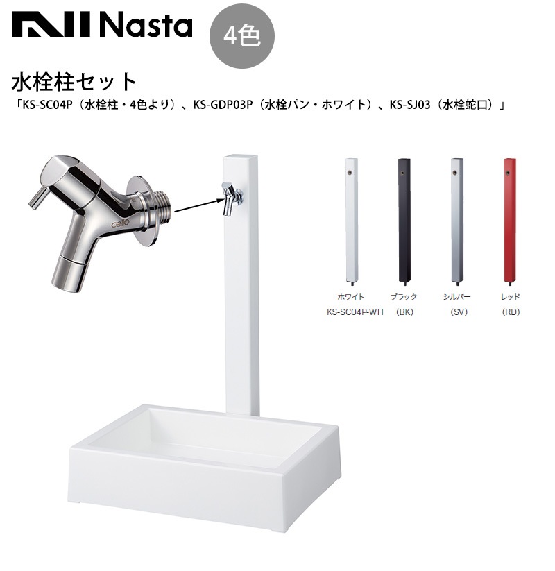 Nasta製「水栓柱セット」「KS-SC04P(水栓柱・4色より)、KS-GDP03P(水栓パン・ホワイト)、KS-SJ03(水栓...